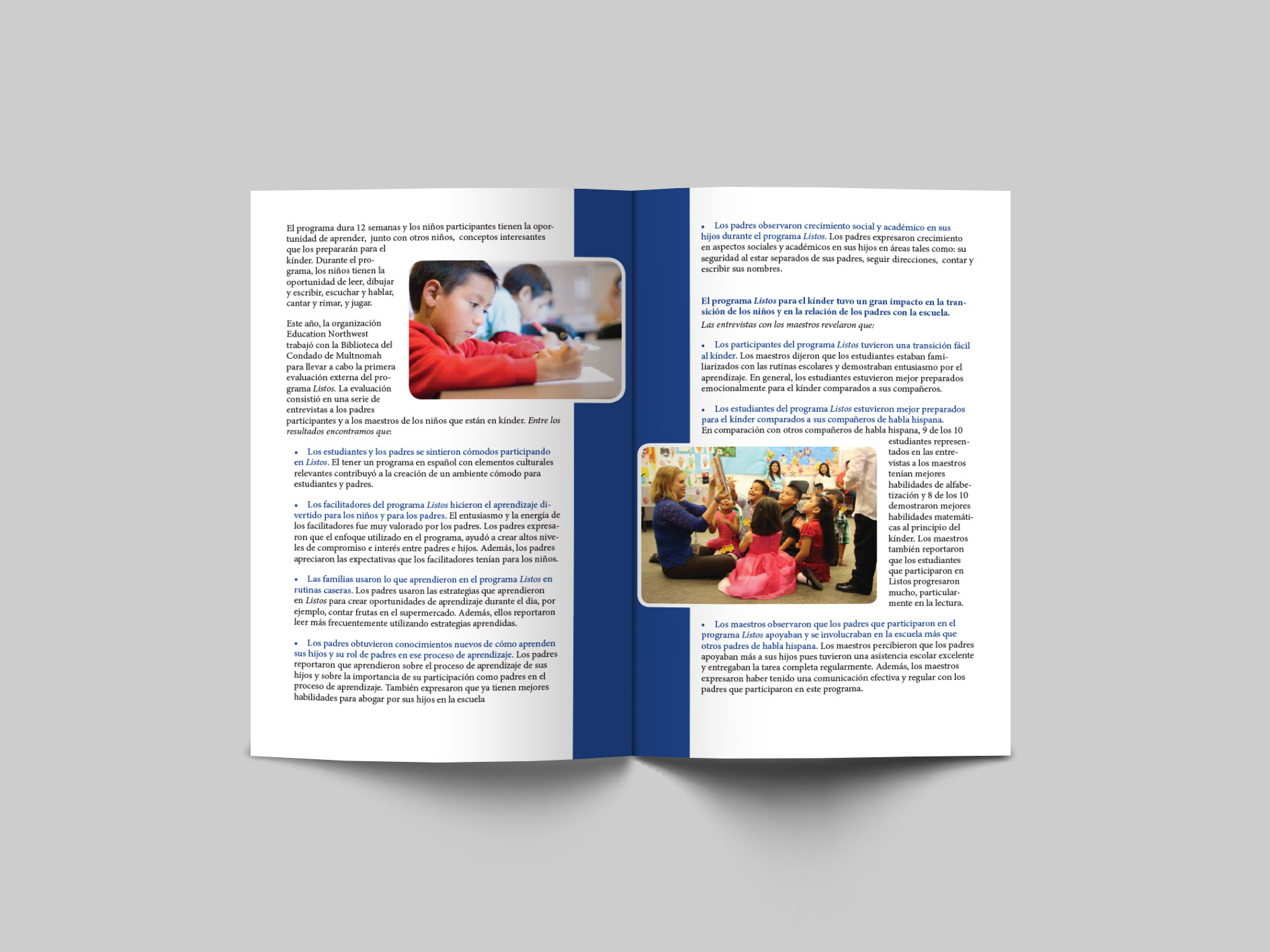 A booklet in Spanish outlining the effects of an education program.