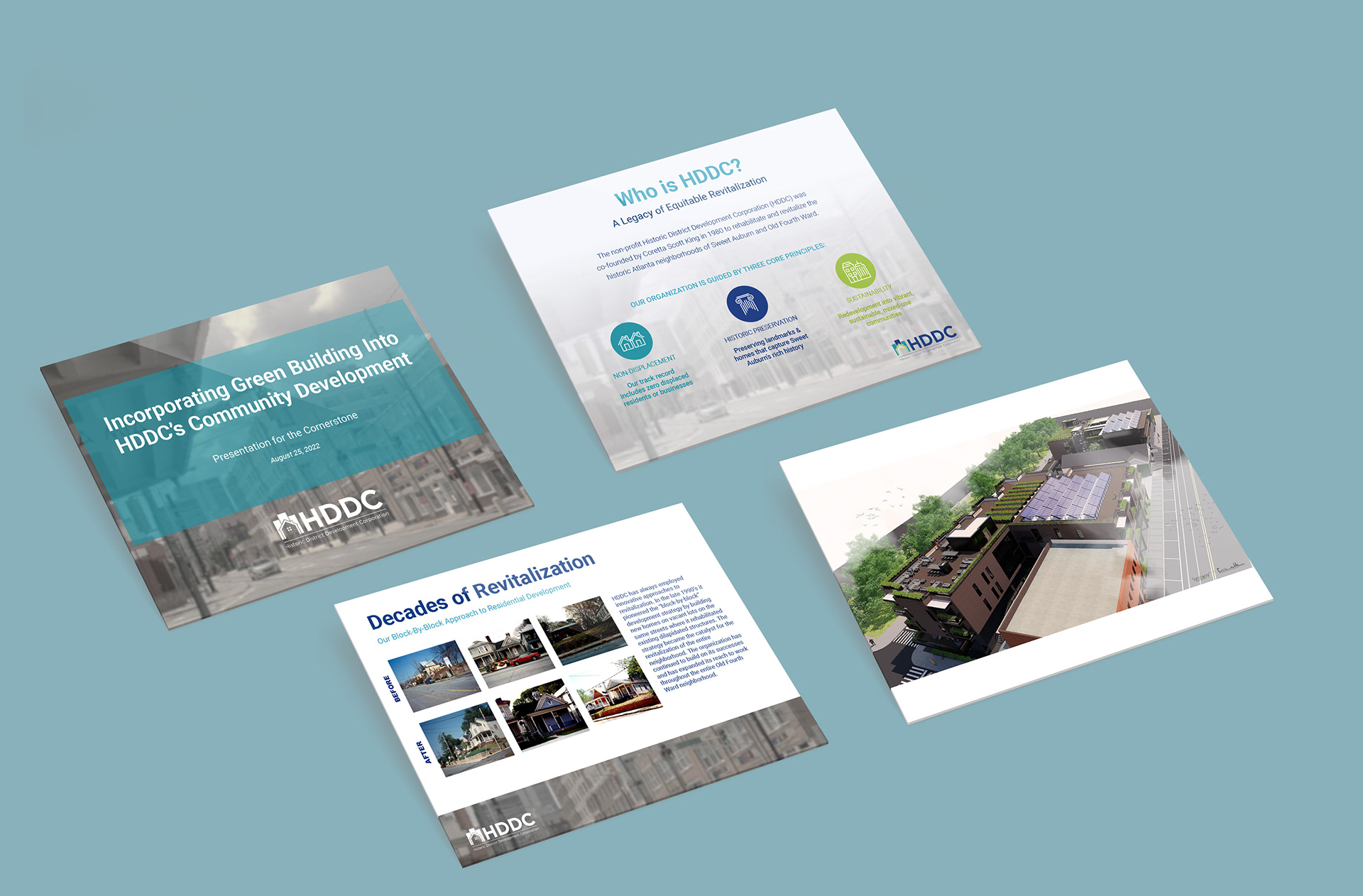 A Google Slides presentation explaining the need for and benefits of green building. Includes basic details on the organization seeking support, project details, and statistical information supporting their case.